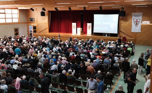 Was können wir gegen den Irrsinn der Politik tun, fragte der Referent sein Publikum in der bis auf den letzten Platz besetzten Meßkircher Stadthalle, und bot Lösungen an. Keine Kartenzahlung sei eine direkte Möglichkeit zu zeigen, dass man die Freiheit durch den Gebrauch von Bargeld schätze. Eine weitere Möglichkeit, sich für den Erhalt der Demokratie und Freiheit einzusetzen, ist seiner Meinung nach die Rückbesinnung auf das christliche Kreuz, unter dem Europa groß wurde. Werden Menschen gottlos, werden Politiker charakterlos. Hahne verwies auf die Worte des Papstes Benedikt XVI: ”Der Antichrist kommt aus den eigenen Reihen.” Ohne Gott sind wir verloren, die Politik muss wieder von den Maßstäben des Evangeliums getragen werden. Ansonsten treiben wir auf einem Schiff ohne Anker und Kompass im Nebel mitten im Eismeer, so der bekennende Christ, sehr zur Freude der Mitglieder des vollständig anwesenden Tempelritterordens.