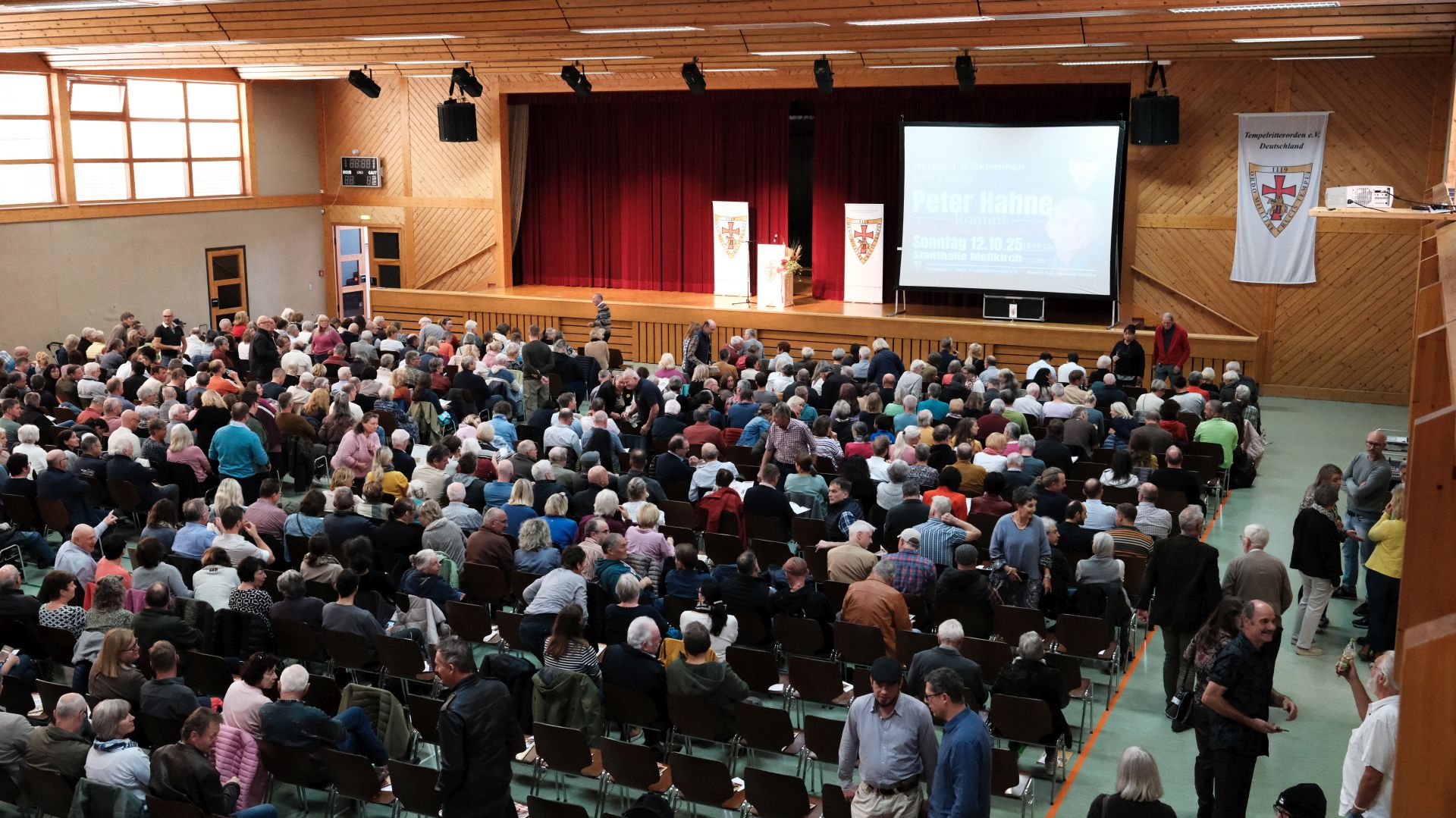 Die Brandmauer und das Nonsens-Argument der Kontaktschuld müssen weg, dann kann Deutschland aufblühen. Dann wird der Wählerwille umgesetzt, welchen die etablierten Parteien bislang in selbstherrlicher Manier nicht nur ignorierten, sondern geradezu mit Füßen traten. Fällt die Brandmauer nicht, führt sie Deutschland in den Untergang. Das war die zentrale Botschaft vom parteilosen Peter Hahne, der am 12. Oktober 2025 vor 800 Besuchern in die Stadthalle Meßkirch auf Einladung des Tempelritterordens ”Ordo Militiae Crucis Templi” kam. Peter Hahnes Vortragsthema lautete: ”Sind wir noch zu retten?”