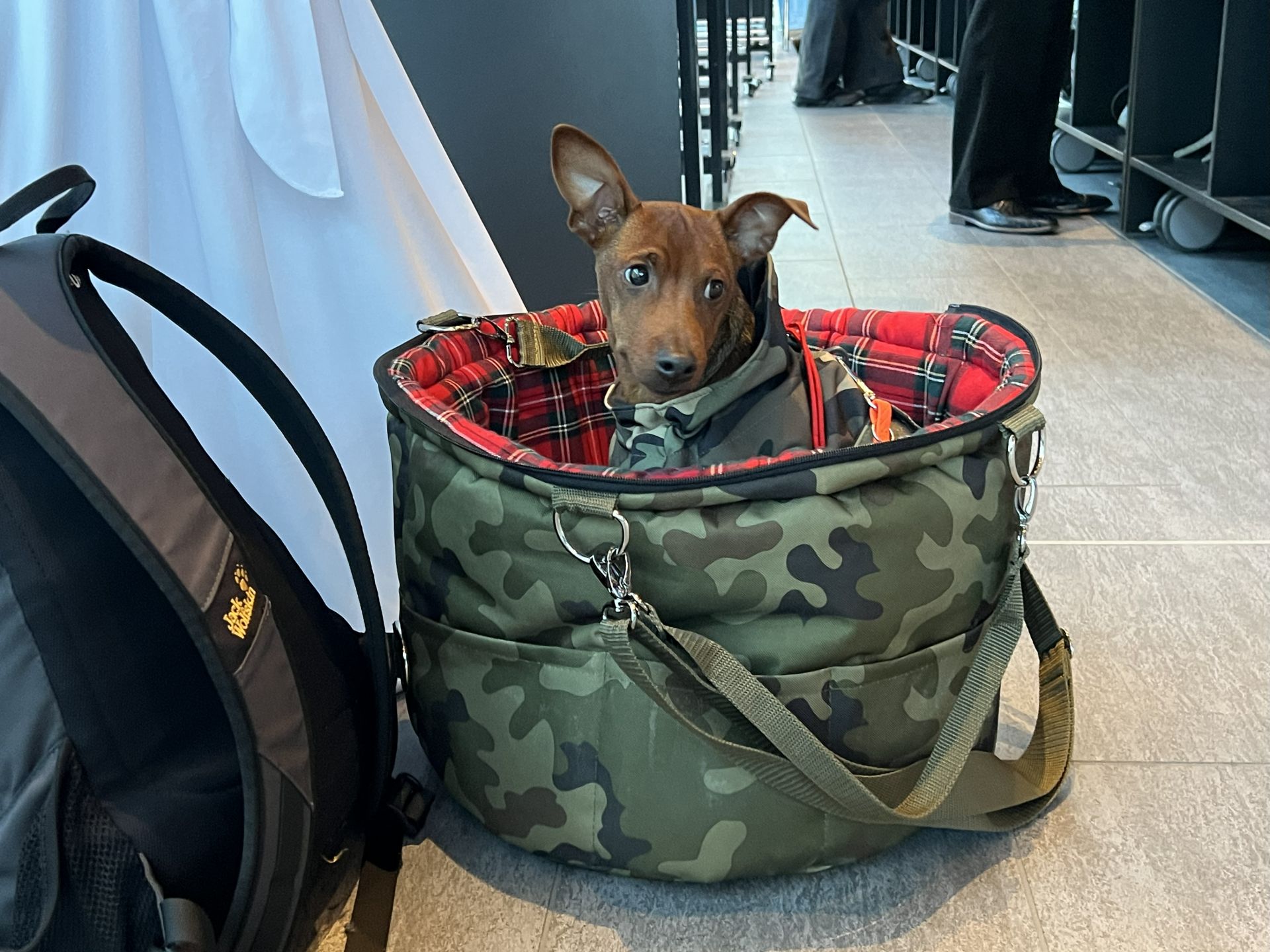 Wie es nach dem Interview weiterging? Gleich wird Alice Weidel auf der Bühne stehen. Begrüßt vom frenetischen Applaus ihrer Anhänger. Sie wird eine ”Power-Rede” halten, und einmal erklären, was für sie extrem ist, und wer für sie die Extremisten sind. Dazu mehr in unserem ausführlichen Artikel über die Veranstaltung vom 25. Oktober 2025 im Laufe der nächsten Tage. Für uns hieß es jetzt: Technik wieder abbauen. Schweiß aus dem Gesicht wischen. Bedürfnissen nachkommen. Der schnelle Blick der Kontrolle, ist auch alles aufgenommen? Ton und Bild perfekt? Erleichterung in jeder Beziehung. Wieder rauf auf die Pressetribüne, mittlerweile ”proppenvoll” auch mit Gästen des Abends, denn der Andrang war so groß, dass gar nicht alle Menschen, die gekommen waren, in der Donauhalle Platz fanden. Allerdings jetzt, da wir das zweite Mal dort Platz nehmen, mit einem Seitenblick auf die Kollegen der diversen Mainstream-Medien- und dem unwiderstehlichen Gefühl: Wir haben das Interview, das ihr nicht kriegt. Entspannen können wir uns jedoch noch nicht ganz, denn jetzt kommen die Redner auf die Bühne und es wird laut. Henry, der kleine Tausendsassa nimmt's gelassen, er ist der Hund der Journalistin. Wir machen uns unsere Notizen und Fotos, damit wir jenen, die nicht dabei sein konnten, einen gehaltvollen Bericht vom Abend im Schwarzwald, präzise gesagt ”auf der Baar” nachliefern können. Das ist jetzt gut geübte Routine.