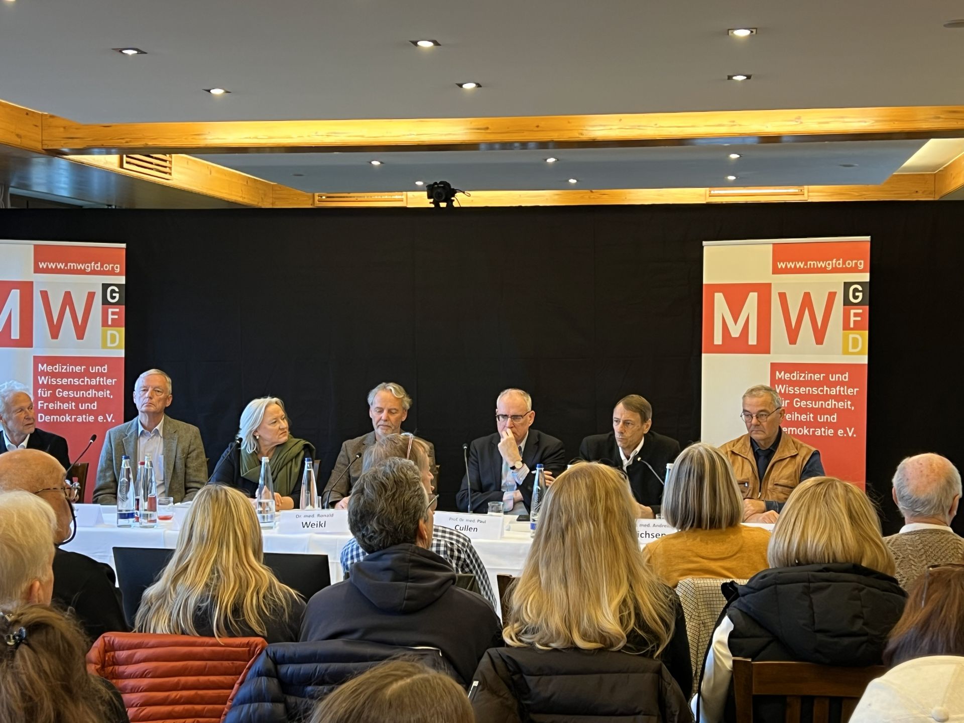 Die Referenten des Symposiums waren: Beate Bahner (Rechtsanwältin, Fachanwältin für Medizinrecht), Prof. Dr. med. Paul Cullen (Laborfacharzt, Facharzt für Innere Medizin, mit Zusatz Infektiologie, Molekularbiologe), Andreas Diemer (Arzt für Allgemeinmedizin, Naturheilverfahren, Diplom-Physiker und MWGFD-Mitglied), Dr. med. Gerd Reuther (Universitätsdozent in Wien), Prof. a.D. Dr. med. Andreas Sönnichsen (Facharzt für Innere Medizin und MWGFD-Mitglied), Hans U.P. Tolzin (Medizin-Journalist, Herausgeber der Zeitschrift “impf-report”, Betreiber der Webseite “Impfkritik”, und des bundesweiten Stammtisch-Netzwerkes “NEFUNI”), Dr. med. Ronny Weikl (Frauenarzt, praktischer Arzt, Naturheilkunde-Ganzheitsmedizin, stellvertretender Vorsitzender des MWGFD, Koordinator der MWGFD-Arbeitsgruppe “Masernschutzgesetz”). Zugeschaltet per Video waren Professor Sucharit Bhakdi und Rolf Kron (praktischer Arzt und Homöopath, ärztlicher Vorstand des “Levana-Verbundes”, und Präsident der “Akademie für Gesundheit, Sport und Kommunikation”).